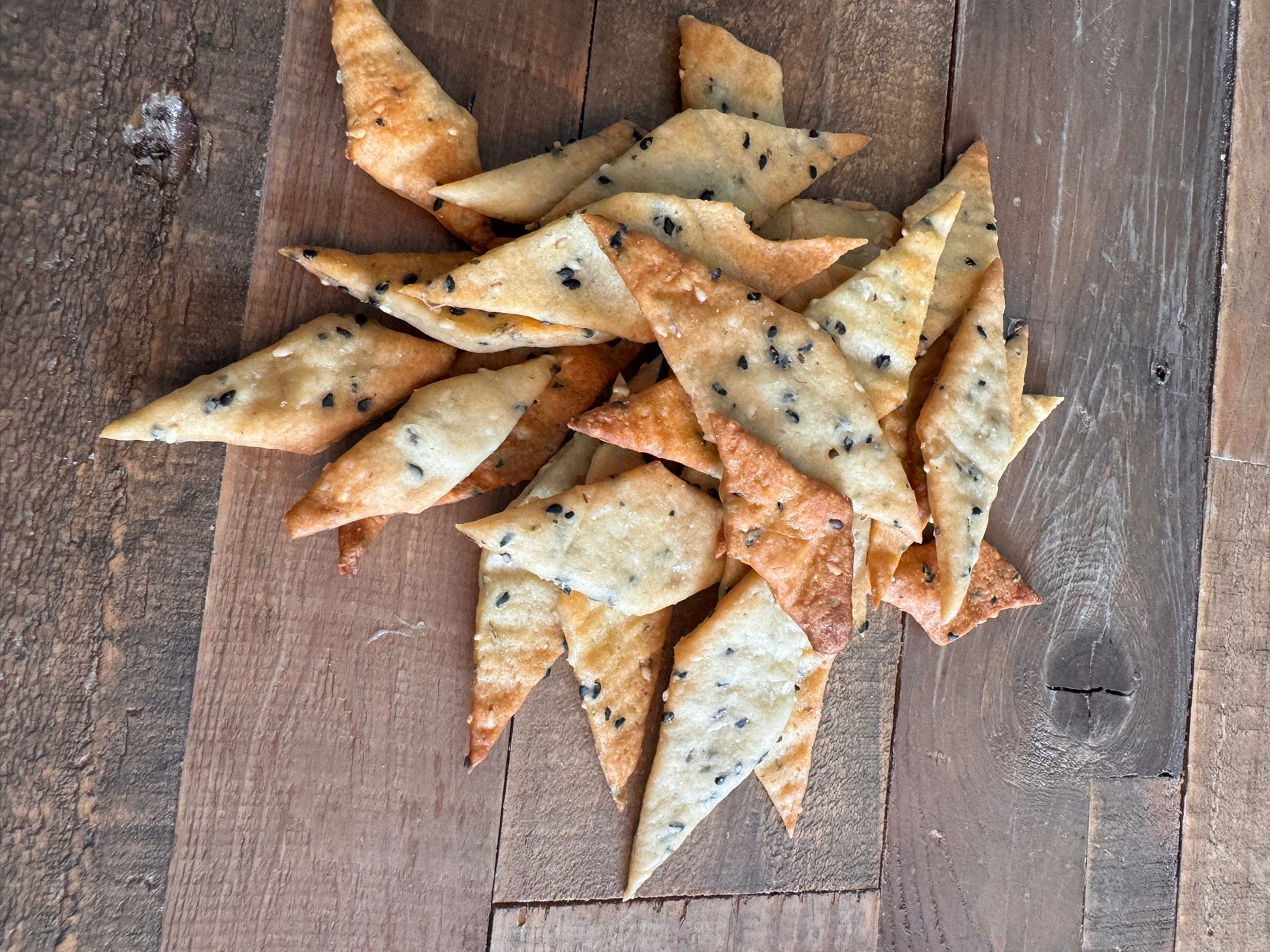 Enjoy the perfect crunch with our handcrafted Sourdough Crackers. Made with our 17-year-old natural sourdough starter, these crackers are a delightful blend of tangy sourdough flavor and crisp texture, perfect for snacking or pairing with your favorite cheeses, dips, or spreads.